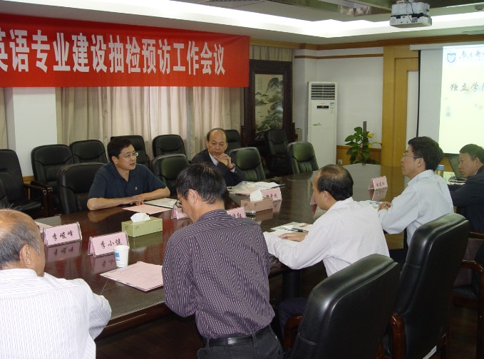 会议在三牌楼校区科学会堂第三会议室举行。评估院袁益民副院长主持会议。常务副院长周西峰首先代表学院对袁院长一行莅临万象城官网指导工作表示了热烈的欢迎。随后,英语专业负责人袁周敏老师汇报了专业建设情况。