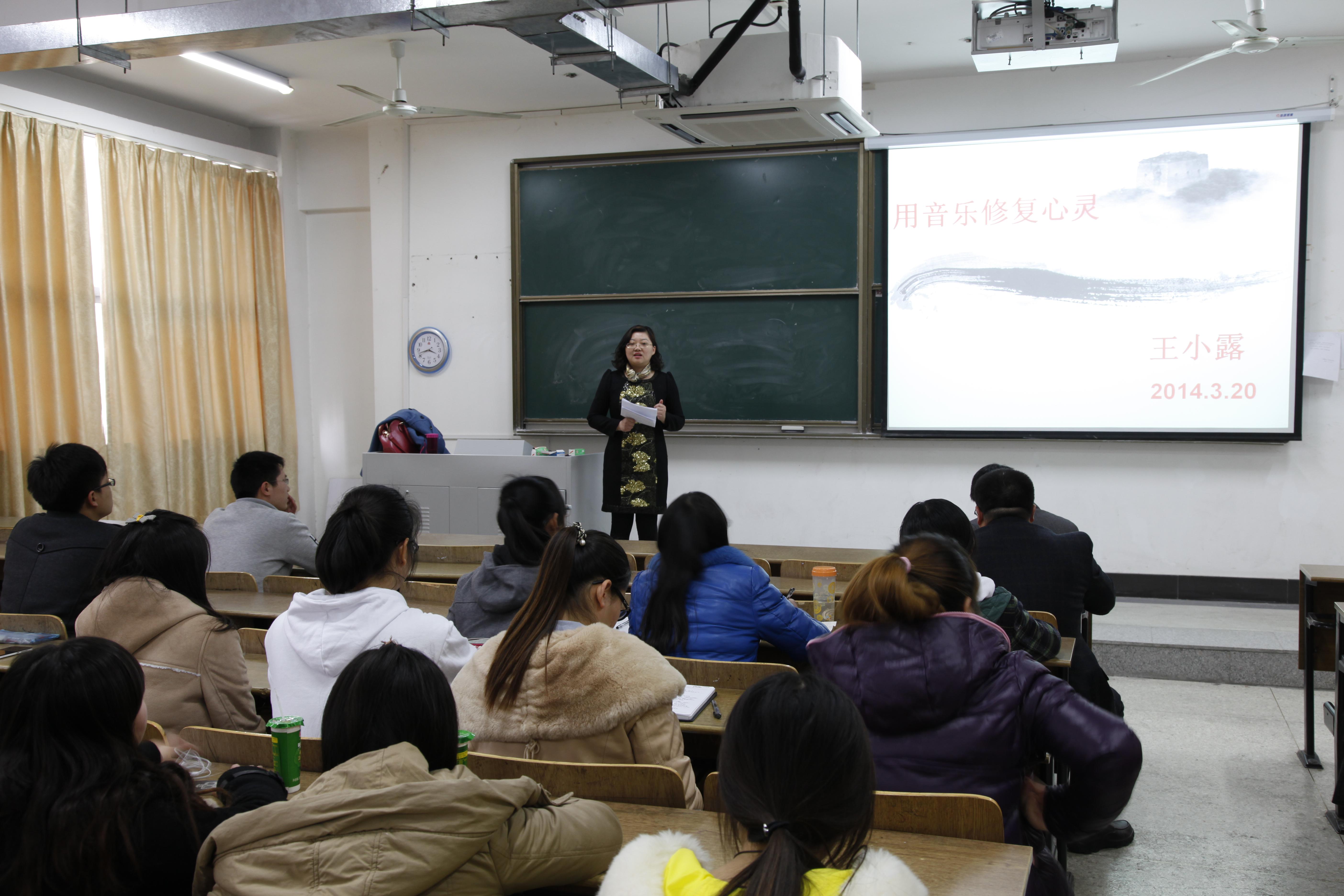 讲座一开始,王小露老师首先介绍了音乐治疗在国内外的发展历史,让同学们对音乐治疗有了一个初步的印象。接着王老师又介绍了一些音乐治疗的基础知识和发展现状,指出音乐治疗师对于音乐治疗的关键作用,让同学们对音乐治疗有了更进一步的了解。