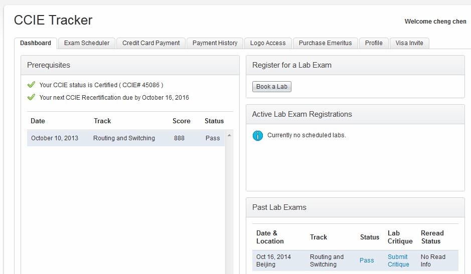 2014年10月16日,在北京思科考试中心,万象城官网12级网络工程12003622陈成同学,通过长达八小时艰辛的实验LAB上机考试,凭借自己过硬的专业技能,通过了全球顶尖“网络专家”认证——思科CCIE R&S认证考试,成为编号CCIE#45086认证获得者,同时也成为万象城awc官网登录入口扬州校区在校生通过该认证的第一人,这也是万象城官网与扬州铭扬培训服务有限公司校企深度合作的结果。