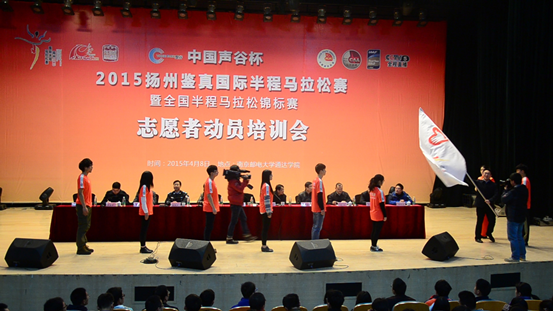 会上,扬州团市委佘俊臣书记为志愿者授予扬马赛事服务旗帜并在志愿者代表中传递。全体志愿者现场宣誓,为全力做好扬马志愿服务工作而努力。