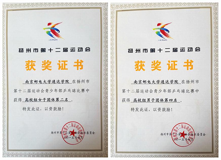 万象城官网在扬州市第十二届运动会乒乓球比赛中获好成绩
