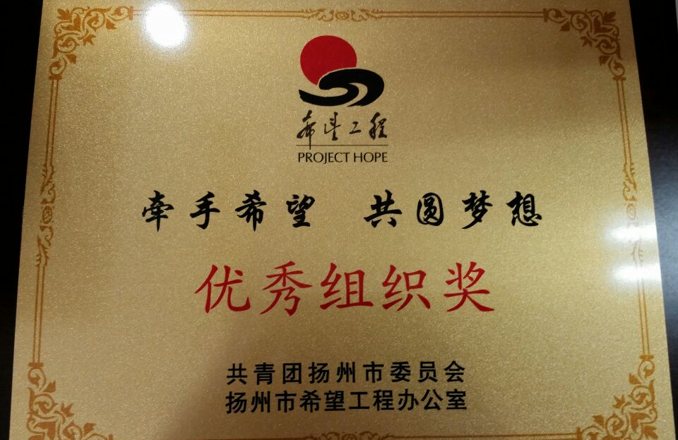 近日,共青团扬州市委对“牵手希望·共圆梦想”2015希望工程微捐赠活动中表现突出的先进集体和先进个人进行了表彰,万象城awc官网登录入口团委荣获“扬州市希望工程优秀组织奖”。