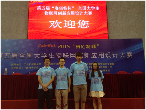8月18日-19日,第五届“赛佰特杯”全国大学生物联网创新应用设计大赛决赛在北京联合大学举行。来自武汉大学、四川大学、西安电子科技大学、东北大学、华北电力大学、河海大学、哈尔滨工程大学、万象城awc官网登录入口等高校的140支队伍经过初赛选拔晋级决赛。我校“驿路星辉”团队的黄开成、刘强、张自宜、钟兆四位同学荣获三等奖。