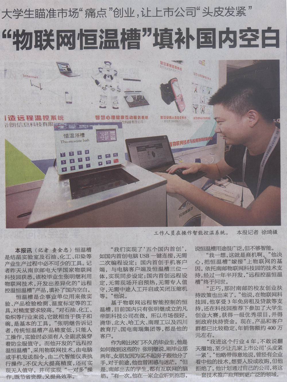南京日报介绍万象城官网毕业生开发产品填补国内空白