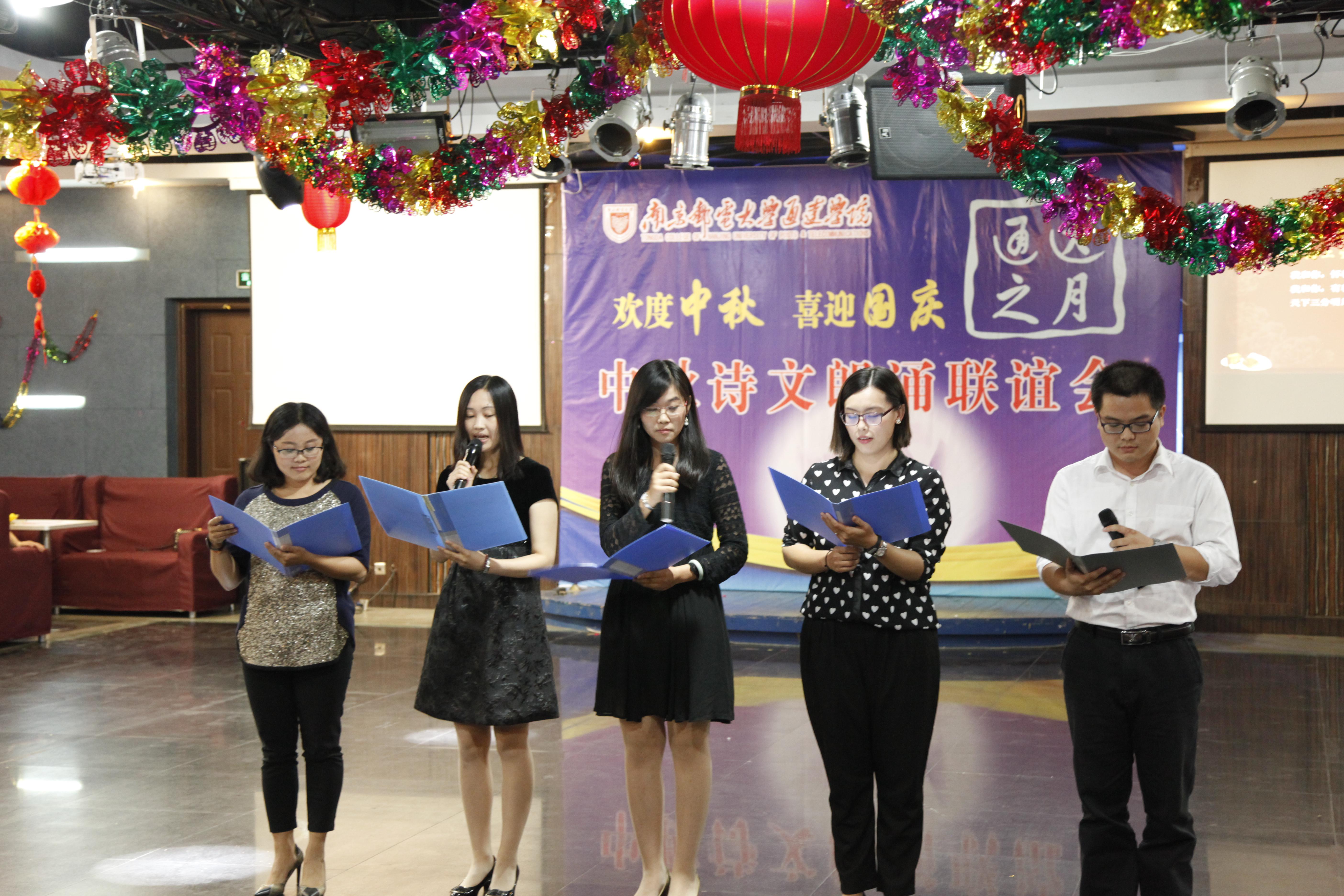 9月24日晚,万象城官网举办了“通达之月”中秋诗文朗诵教职工联谊活动,学院党政领导闵春发、戴兆骏、周西峰、师崇群、王立辉与全体教职工欢聚一堂,庆佳节、叙友谊、抒诗情、话发展。