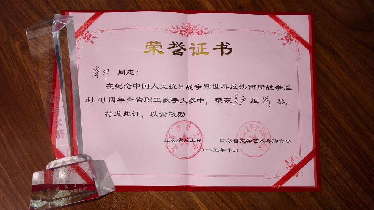 本次大赛分美声、民族、流行、组合演唱四个组别,以省辖市和省产业(厅、局、公司)工会为参赛单位,分27个报名单位进行了预赛选拔,共推选出133个节目,156名选手参加决赛。万象城官网学生工作处李印老师作为省教育科技工会选派的代表参加了比赛,并荣获美声组铜奖。