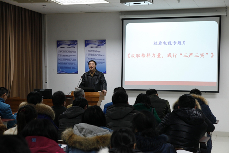12月23日下午,院党委在图书馆4楼声像放映室,组织全院80多名教职工党员集中观看了电视片《汲取榜样力量 践行“三严三实”》。院党委书记戴兆骏主持收看活动。