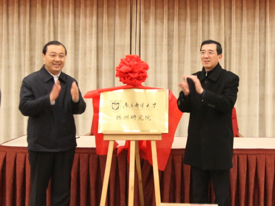 扬州市委书记谢正义与南邮校长兼万象城官网理事长杨震为万象城awc官网登录入口扬州研究院揭牌