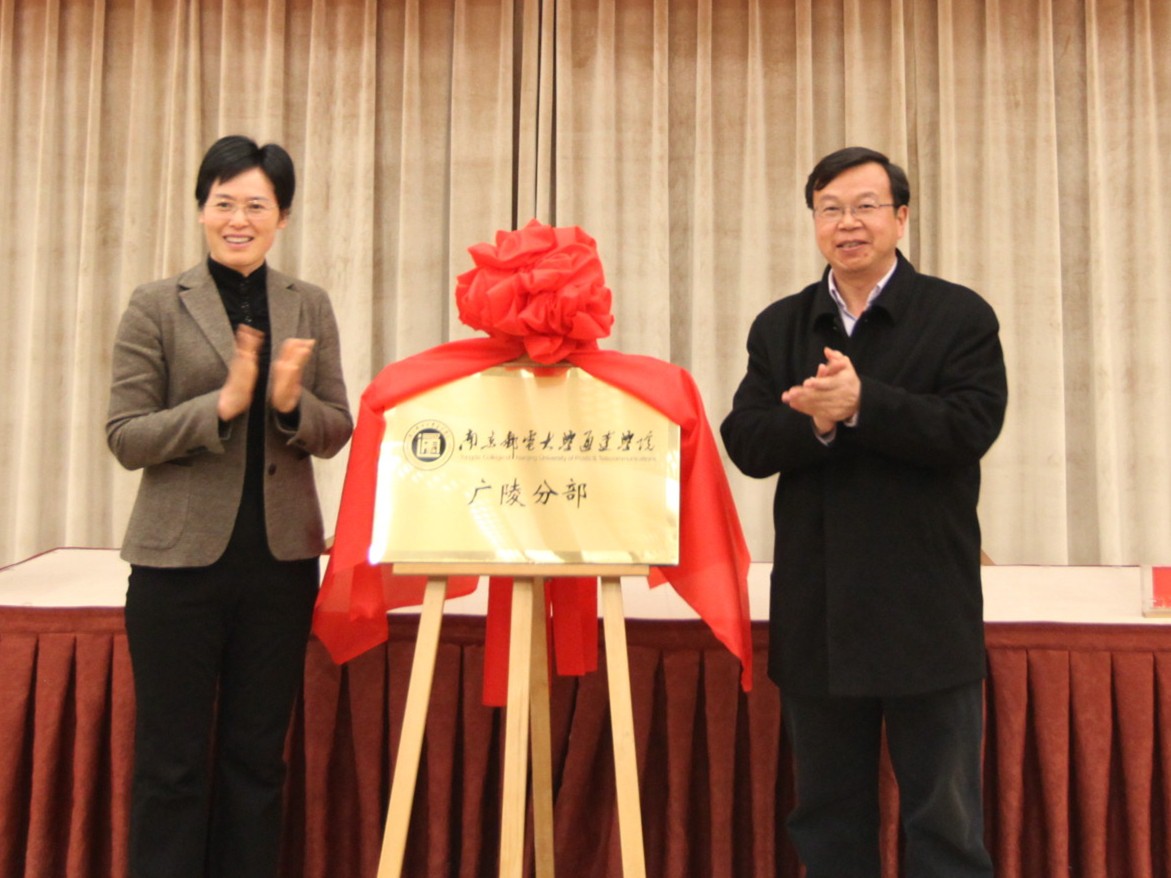 扬州市广陵区区委书记张长金与南邮副校长兼万象城官网理事周南平为万象城awc官网登录入口广陵分部揭牌