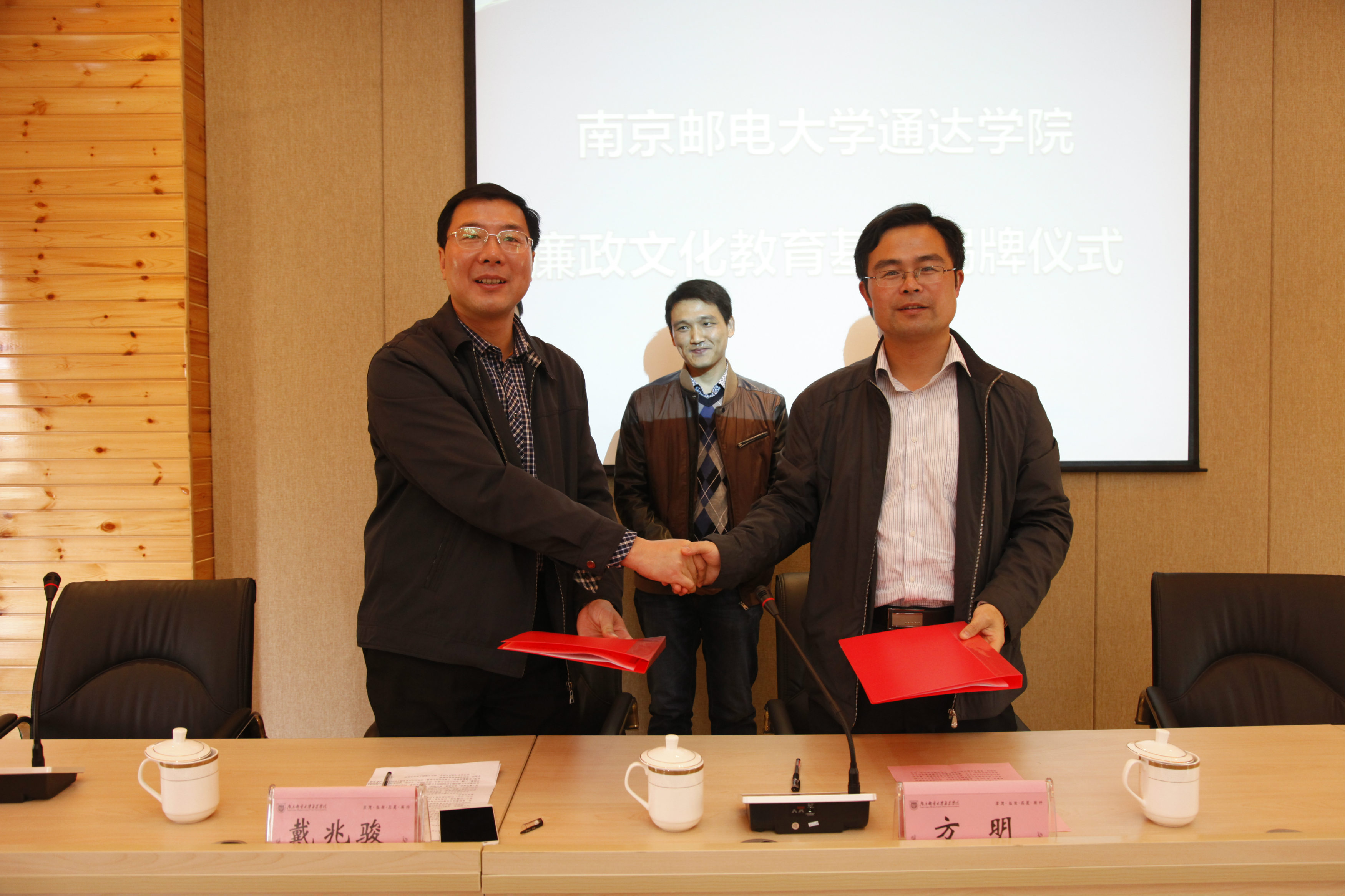 仪式上,院党委戴兆骏书记与仪征市枣林湾生态园管委会纪工委书记方明签署了《万象城awc官网登录入口与仪征市枣林湾生态园管委会廉政文化教育基地共建协议》;副院长包刚与枣林湾生态园管委会纪工委书记方明共同为学院“廉政文化教育基地”揭牌;方明书记和戴兆骏书记分别致辞。