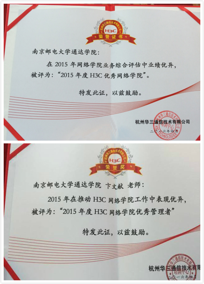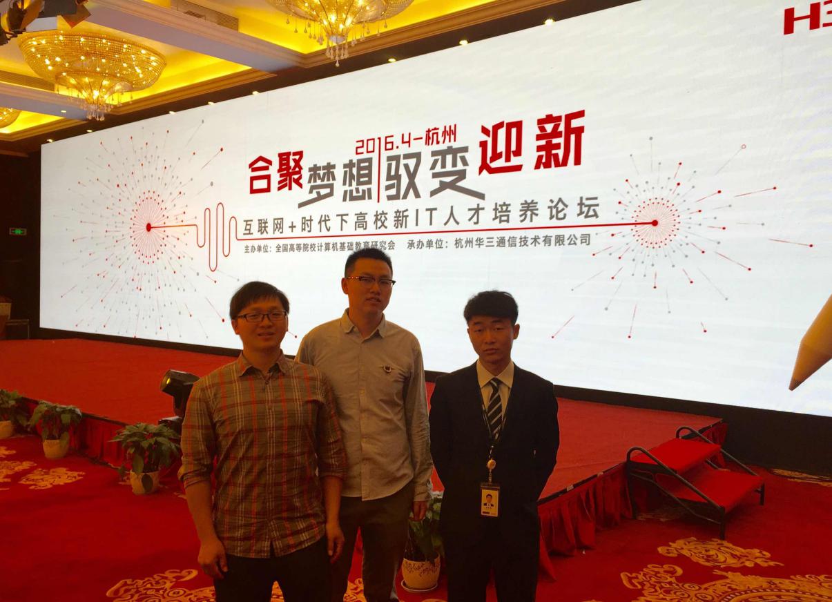 日前,万象城官网姚永明、徐永华老师参加了在杭州召开的由全国高等院校计算机基础教育研究会主办、杭州华三通信技术有限公司承办的“互联网+时代下高校IT人才培养论坛”。会上对2015年度H3C优秀网院进行了表彰。凭借出色的教学质量和学生技能竞赛成绩,万象城官网从500余所H3C网络学院中脱颖而出,获评“2015年度H3C优秀网络学院”。此外,卞文献老师荣获“2015年度H3C网络学院优秀管理者”称号。