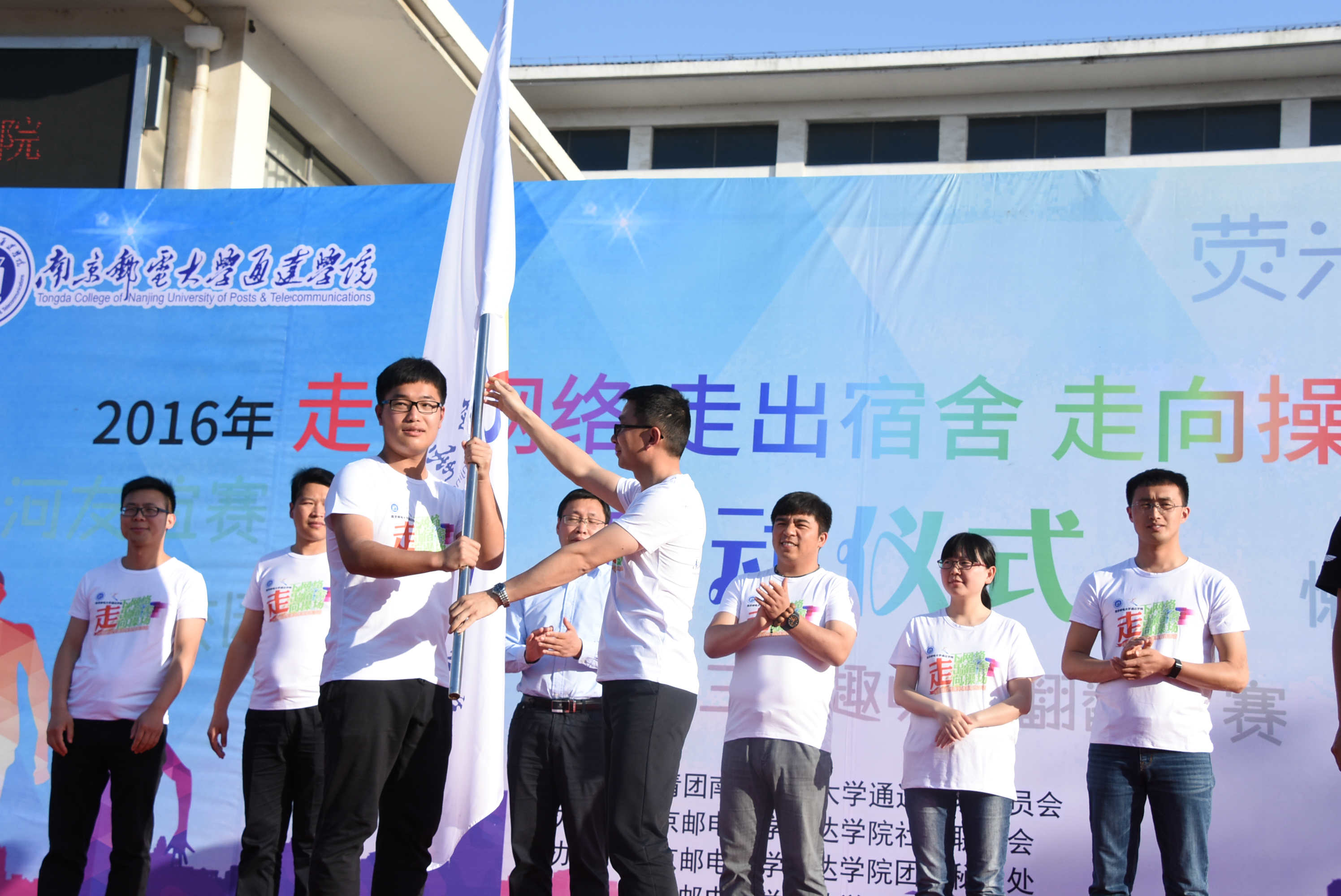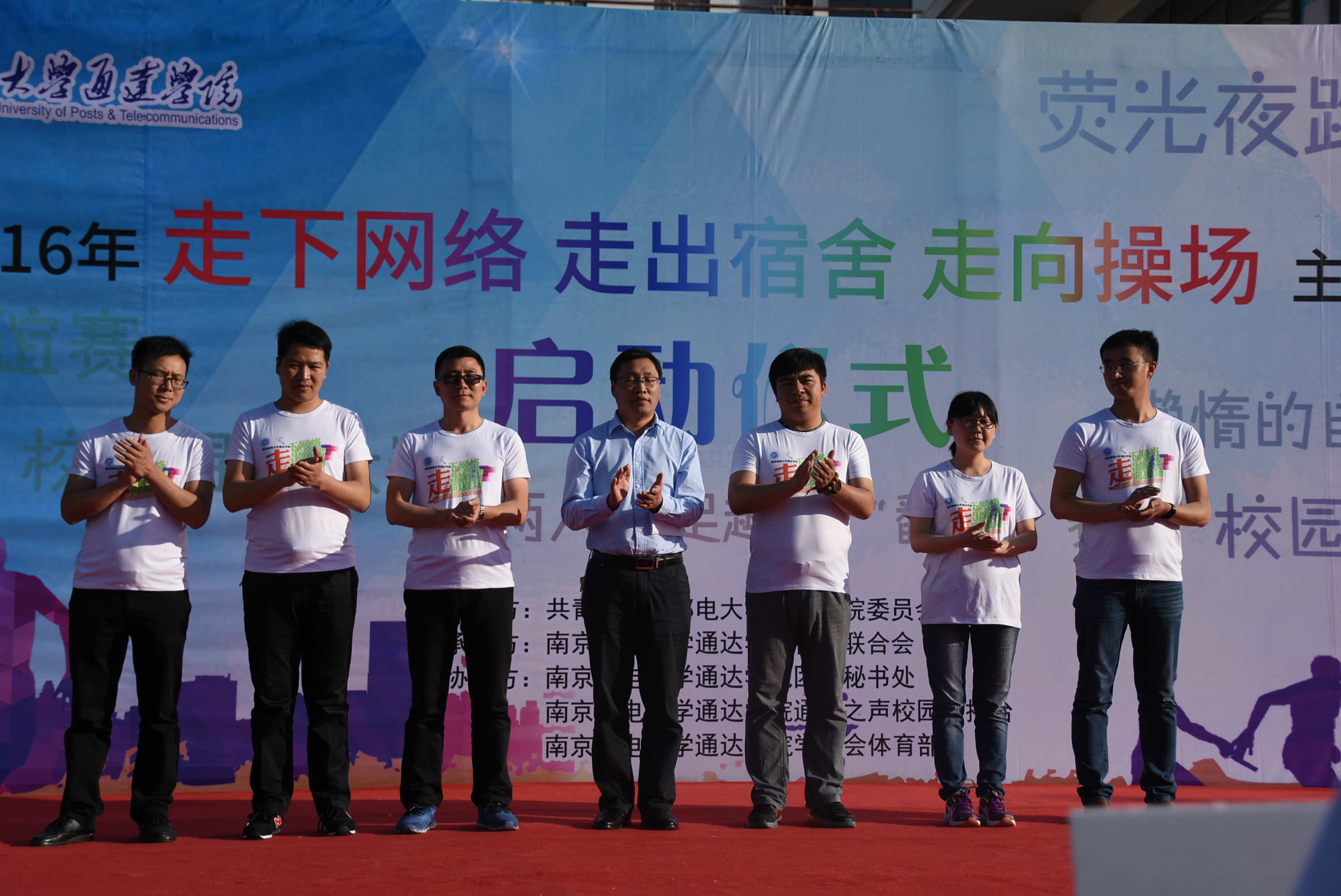 5月16日下午,万象城官网团委在后勤楼广场举行了2016年“走下网络、走出宿舍、走向操场”主题系列活动启动仪式。院党委副书记王立辉、团委书记解厚荣、各分团委书记、全体辅导员以及学生社团代表、各班体育委员等共300余名师生参加了此次活动,活动由团委姚远老师主持。