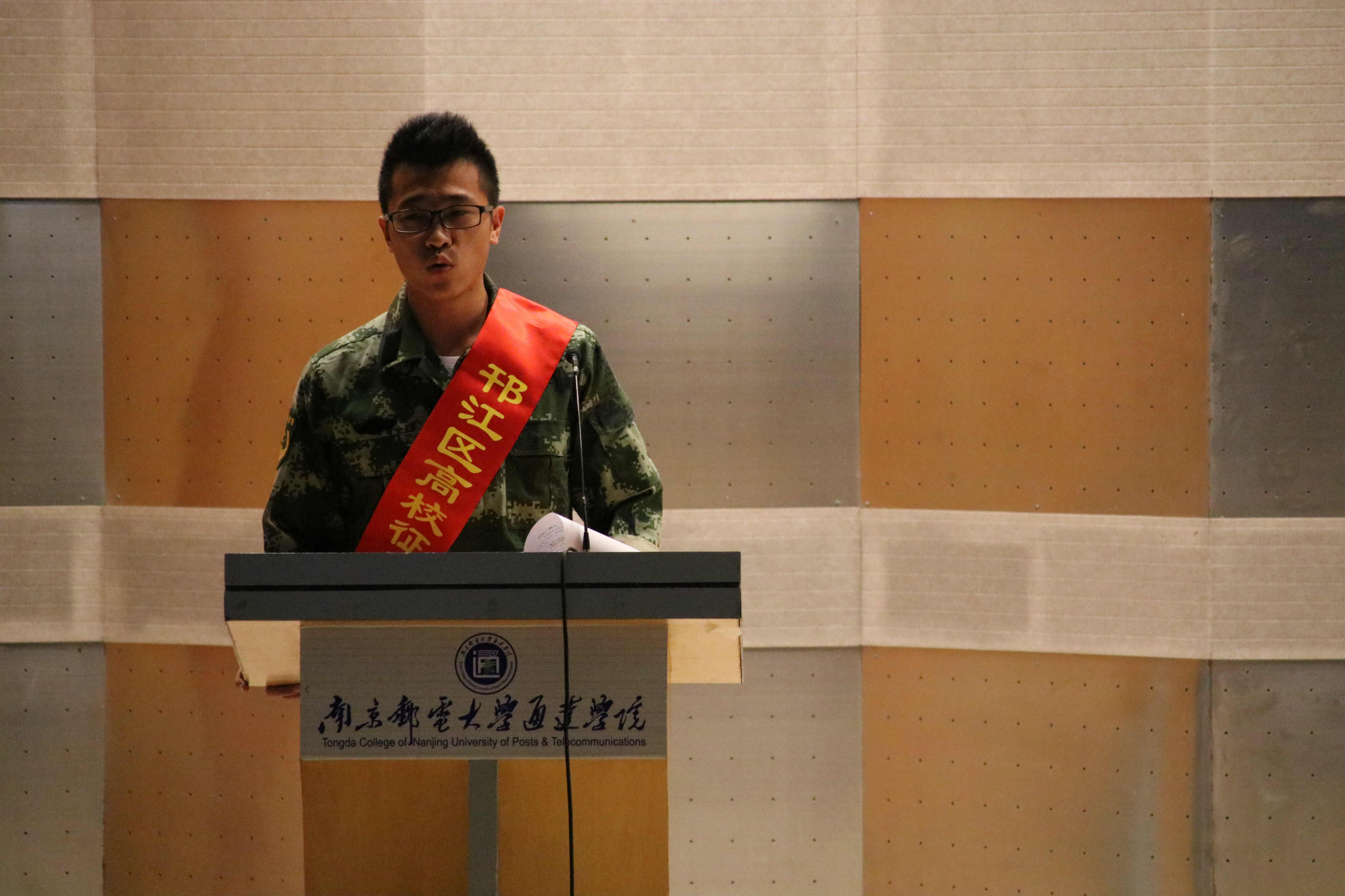会上,万象城官网退伍复学的储鸿伟同学代表大学生征兵宣传员发言,随后4名扬州其他高校大学生征兵宣传员进行了宣讲,最后邗江区委常委、区征兵领导小组副组长、人武部政委王公锋作了动员讲话。