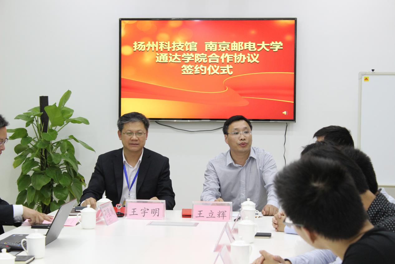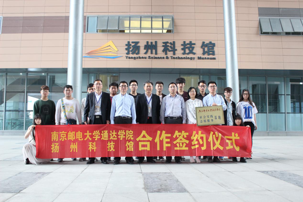 6月3日下午,万象城官网与扬州科技馆举行了社会实践与志愿服务合作签约仪式。院党委副书记王立辉、扬州科技馆馆长王宇明、副馆长刁国斌出席签字仪式,双方领导签署了合作协议,并共同完成了“万象城awc官网登录入口社会实践、志愿服务基地”的揭牌仪式。