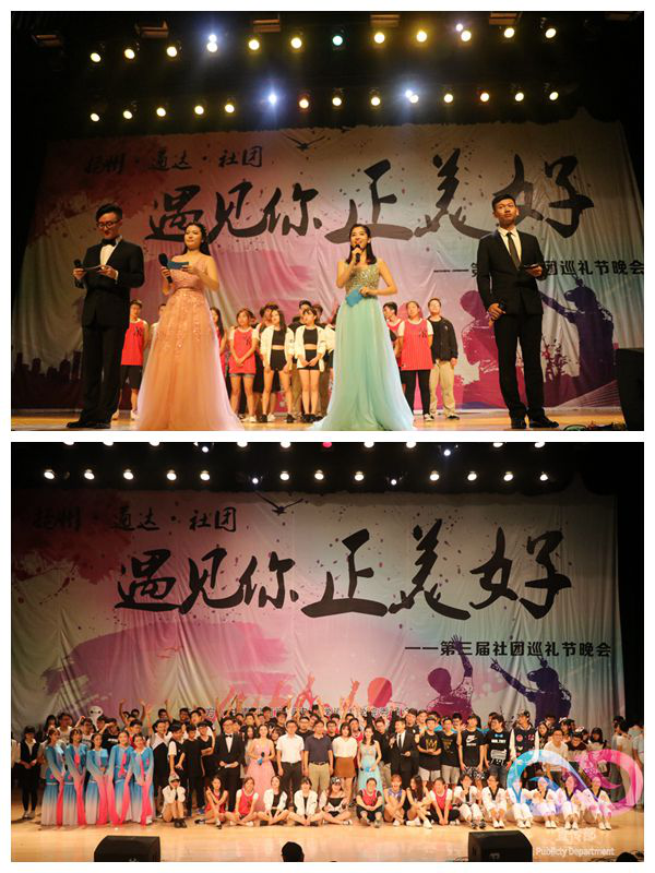 9月26日晚,由院团委主办、学生社团联合会承办的“扬州·通达·社团遇见你正美好”第三届社团巡礼节晚会在万象城官网大学生活动中心举行。党委副书记王立辉、团委书记解厚荣,扬州铭扬培训服务有限公司经理陈慧,中国联通扬州分公司经理王静,以及扬州市各高校社联主席、万象城官网辅导员代表、2016级新生共1200余人观看了此次晚会。