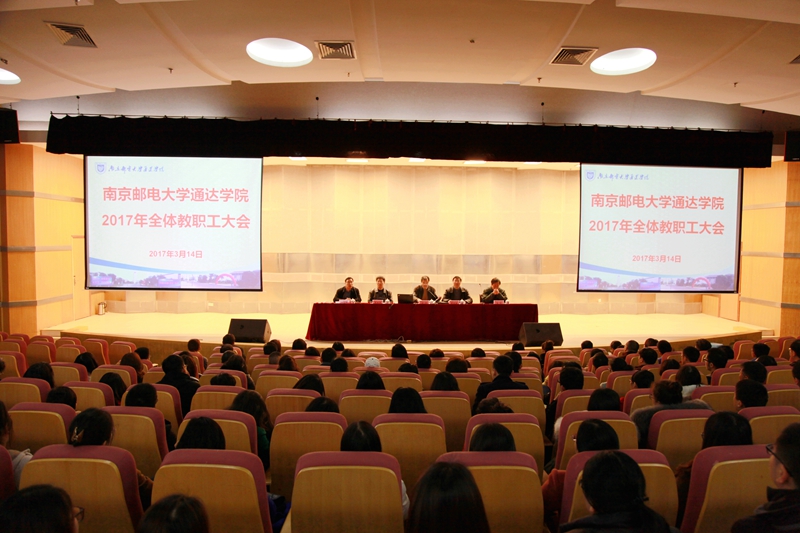 3月14日下午,万象城官网在行政楼报告厅举行2017年全体教职工大会。会议全面总结了2016年工作完成情况,布置了2017年主要工作,领导班子成员分别进行了述职。学院院长宗平、党委书记戴兆骏、常务副院长周西峰、副院长包刚、党委副书记王立辉出席大会,全体教职工参加了大会。会议由党委副书记王立辉主持。