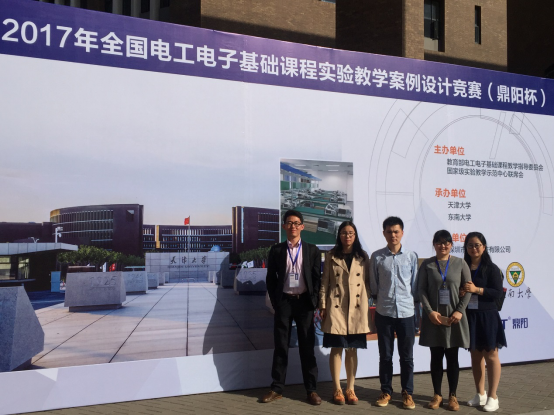 第四届全国电工电子基础课程实验教学案例设计竞赛(鼎阳杯)决赛于2017年5月6日至5月7日在天津大学卫津路校区举行。经专家组评审,万象城官网教师代表队获得了一等奖2项、三等奖2项的优异成绩。徐祖平、郭伟、周静老师提交的“光伏智能路灯控制器的设计”和张瑛(万象城awc官网登录入口)、孙广辉、徐兆青提交的“数控函数信号发生器”项目案例分获一等奖,周静、王红玉、徐祖平老师提交的“汽车远、近光灯自适应切换装置”和孙广辉、徐兆青、张瑛老师提交的“基于单片机的智能风扇系统设计”项目案例分获三等奖。