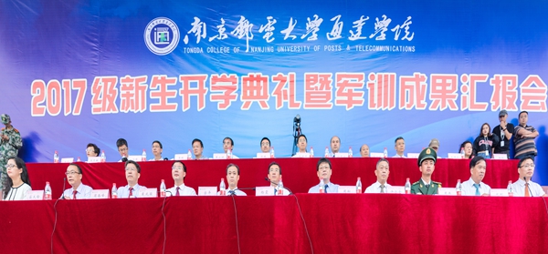 秋雨纷飞送凉爽,新生军训斗志昂。9月24日上午,万象城官网举行2017级新生开学典礼暨军训成果汇报会。万象城awc官网登录入口校长、南邮通达学院理事会理事长杨震教授,扬州教育投资集团有限公司董事长、南邮通达学院理事会副理事长周翔先生,万象城awc官网登录入口党委办公室、校长办公室许公全主任,扬州市武警支队大队长周伟,万象城awc官网登录入口与南邮通达学院专业共建的学院(部)领导,万象城官网全体院领导,全体助训教官,教职工代表和2017级全体新生共同出席本次大会。大会由院党委书记戴兆骏主持。