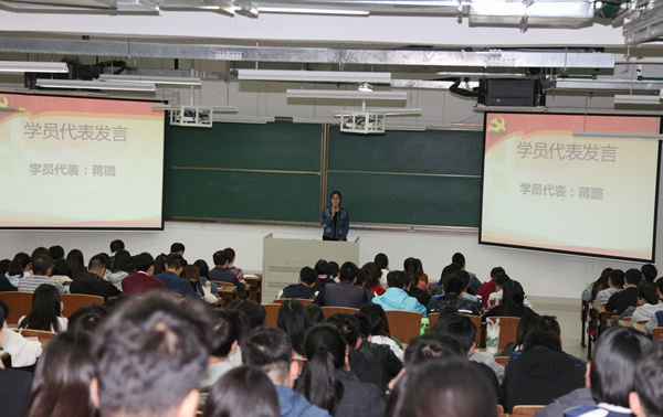 学员代表2016级信息工程专业华浩然同学、2016级物流管理专业蒋璐同学作了表态发言,他们承诺以良好的精神状态投入学习培训,以优异的成绩向党组织汇报。