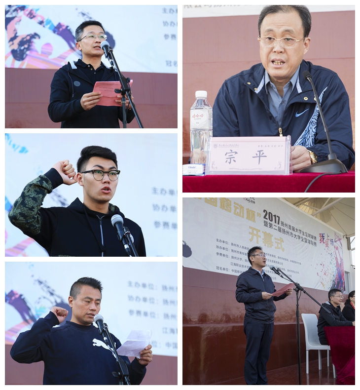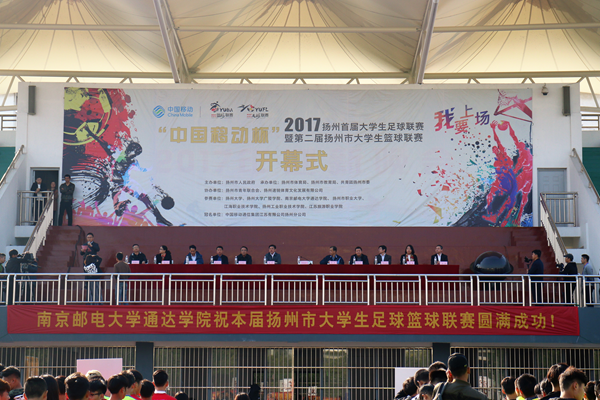 10月31日下午,由扬州市人民政府主办,扬州市体育局、扬州市教育局、共青团扬州市委共同承办的“中国移动杯”扬州首届大学生足球联赛暨第二届大学生篮球联赛开幕式在万象城官网足球场举行。扬州市委常委、宣传部长姜龙,扬州市委副秘书长、体育局长佘俊臣,共青团扬州市委书记郭鹏驰,扬州市委教育工委副书记王朝勃,万象城官网院长宗平,扬州大学广陵学院党委常务副书记孟益宏,扬州市职业大学党委副书记、副校长许金如,江海职业技术学院党委副书记、副院长陈荣华,扬州工业职业技术学院副校长倪永宏,江苏旅游职业学院党委副书记梅纪萍,扬州大学体育学院副院长、体工部常务副主任傅建,中国移动通信集团江苏有限公司扬州分公司总经理冯劲出席了本次开幕式活动。开幕式由共青团扬州市委书记郭鹏驰主持。