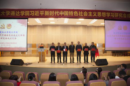 大会在庄严的国歌声中拉开序幕。院团委书记解厚荣宣读了《关于成立习近平新时代中国特色社会主义思想学习研究会的通知》。院团委副书记姚远宣读了《关于聘任戴兆骏等同志为习近平新时代中国特色社会主义思想学习研究会指导教师的决定》。院党委委员、院长宗平教授向习近平新时代中国特色社会主义思想学习研究会指导教师颁发了聘书。院党委书记戴兆骏与学习研究会会长王艳芳共同为习近平新时代中国特色社会主义思想学习研究会揭牌。院党委委员、副院长盛大铨为学习研究会授会旗。