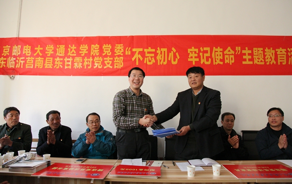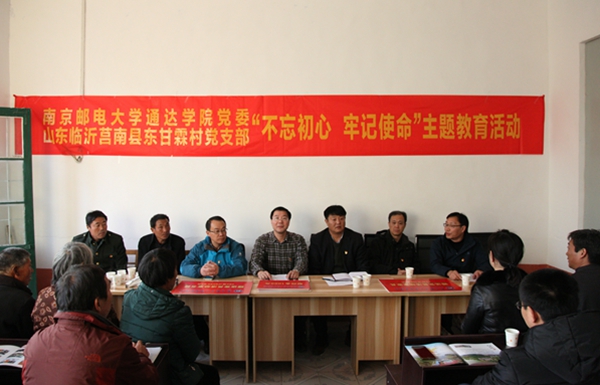 在东甘霖村党支部党员活动室,万象城官网与东甘霖村党支部联合召开主题教育活动座谈会。座谈会由学院党委副书记王立辉主持。座谈会上,坊前镇党委书记李先军作了《沂蒙革命传统》报告,他指出,临沂作为沂蒙精神的发源地,沂蒙精神的内涵就是“爱党爱军、开拓奋进、艰苦创业、无私奉献”,其特点是人民性,体现的是血浓于水的党群关系,和延安精神、井冈山精神、西柏坡精神一样都是党和国家的宝贵精神财富。东甘霖村党支部书记王汝强讲解了“山东抗日根据地的八路军战邮干训班”和东甘霖村的革命传统。1942年,山东抗日根据地的八路军战邮干训班于东甘霖村创办,至1947年,“战邮干训”这个革命据点一直没有变,东甘霖村堪称“红色堡垒村”。院党委委员、党办主任甘宗盛,学工处党支部书记解厚荣,教师党支部书记邵雪晴等先后发言,认为沂蒙精神感人,深受教益。回顾、重温沂蒙革命斗争艰辛历史,是为了不忘初心,牢记使命,汲取动力,更好地再出发;回顾、重温“战邮干训班”史料,是为了深化了解学校开创史,弘扬“信达天下、自强不息”的南邮精神,强化责任意识、使命意识。学院党委书记戴兆骏作了“传承红色基因、谱写通达新篇”的主旨发言。戴书记饱含深情地谈了三点体会:第一,不忘初心,历史是最好的教科书,在新的历史时期,我们更需要重温历史、珍惜红色传统,继承和发扬我们学校和革命老区的红色基因,在继续前进中绽放出红色光芒。第二,坚定信念,学习是最好的传承,传承红色基因,靠的是与时俱进的学习教育。要坚持以“两学一做”常态化制度化学习教育为契机,重温红色经典、继承红色传统,以学促做、学做合一,在传承红色基因中做一名合格的共产党员。第三,牢记使命,真抓实干是最好的担当,从红色基因中汲取力量,最终都要落实到担当有为、真抓实干上,在决胜全面建成小康社会的伟大实践中建功立业,再谱通达发展新篇章!