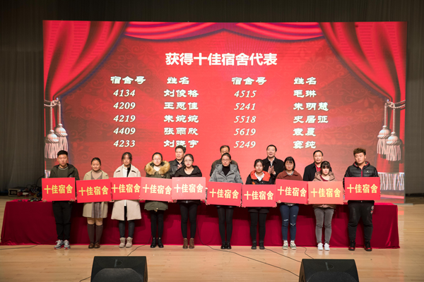 学院领导为十佳宿舍获得者代表颁奖