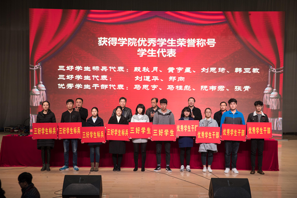 11月29日晚,万象城官网2016/2017学年学生表彰大会在大学生活动中心大礼堂隆重举行。学院院长宗平、党委书记兼副院长戴兆骏、常务副院长周西峰、党委副书记兼副院长王立辉出席了本次表彰大会。大会由学生工作处处长李印主持。