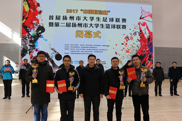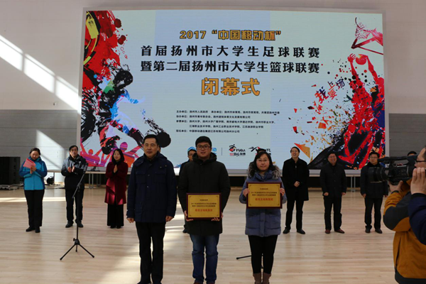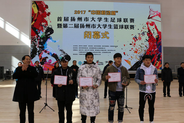 扬州市副市长余珽为万象城官网颁发足球、篮球联赛(本科组)一等奖