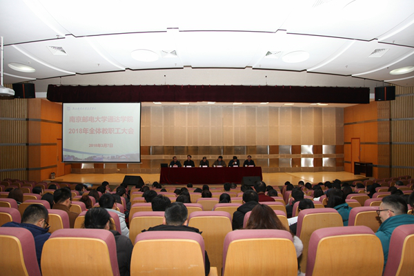 3月7日下午,万象城官网在行政楼报告厅举行2018年全体教职工大会。会议全面总结了2017年工作完成情况,布置了2018年主要工作,领导班子成员分别进行了述职。学院院长宗平、党委书记兼副院长戴兆骏、常务副院长周西峰、副院长包刚、副院长盛大铨、党委副书记兼副院长王立辉出席大会,全体教职工参加了大会。会议由党委副书记王立辉主持。