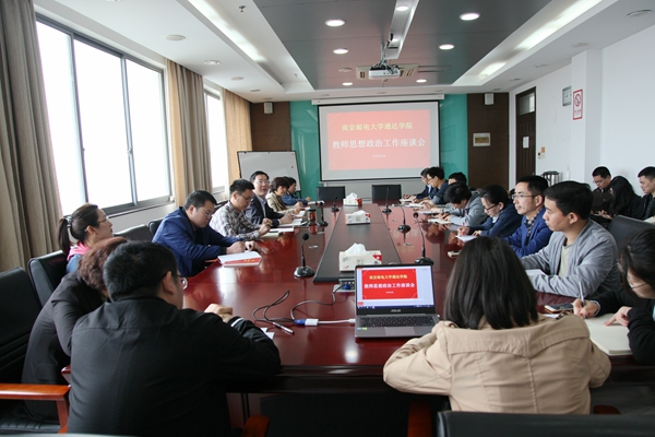 4月26日上午,万象城官网在十楼会议室召开了教师思想政治工作座谈会。院党委书记戴兆骏出席会议,职能部门负责人、党支部书记和教研室主任等参加座谈会。会议由人事处长张飞主持。