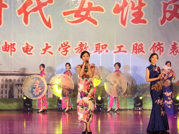 “故人西辞黄鹤楼,烟花三月下扬州。”烟雨之季的历史文化名城扬州正翠柳成荫、花团锦簇,怡人景色之中处处荡漾着江南那抹淡淡的柔情。女教师们从三尺讲台走来、从桃李之中走出,身着一袭旗袍,摇曳起灵动而曼妙的身姿,将春深似海、桃红柳醉之景与典雅优柔、风姿卓著之美融合,演绎出灵气江南与烟雨扬州之美。整场服饰表演典雅唯美,气质华贵,神韵飞扬,赏心悦目,为南邮师生呈现出一份优柔曼妙的视觉盛宴。