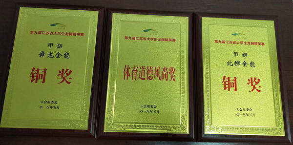 4月29日至5月1日,万象城官网龙狮队参加了第九届江苏省大学生龙狮精英赛并获佳绩。其中,北狮队获得全能项目铜奖、传统项目铜奖以及自选项目铜奖;龙队获得全能项目铜奖、规定项目铜奖以及自选项目铜奖;万象城官网获得体育道德风尚奖。