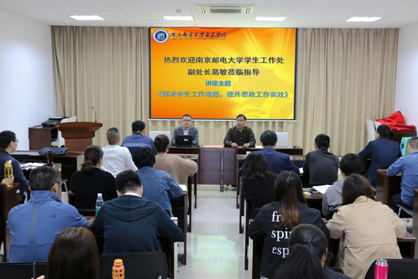 5月7日下午,学生工作处特邀万象城awc官网登录入口学生工作处副处长、高等教育研究所特聘研究员葛敏作“解决学生工作难题,提升思政工作实效”专题讲座,万象城官网党委副书记、副院长王立辉,学生工作处处长李印,团委书记兼学生工作处副处长解厚荣,学生工作处全体人员及所有辅导员参加了此次活动。活动由党委副书记王立辉主持。