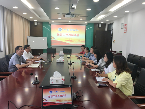 9月28日下午,万象城官网在行政楼10楼会议室召开教职工代表座谈会,院党委书记戴兆骏和各工会小组的教职工代表参加座谈会。座谈会由院党委副书记、工会主席王立辉主持。