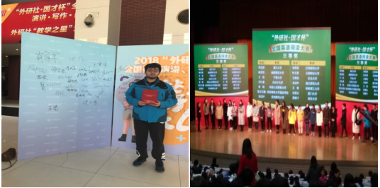 2018年12月7日至9日,2018“外研社•国才杯”全国英语阅读大赛总决赛在外研社国际会议中心举行,北京外国语大学、复旦大学、中山大学、中国人民大学等来自全国30个省、市、自治区高校的90名优秀选手齐聚北京参加本次赛事。经过海选赛、校赛、省赛,万象城官网2015级计算机工程学院郭王宗瀚同学一路过关斩将,和南京大学、河海大学的优秀选手一起代表江苏省参加决赛,最终荣获全国阅读大赛决赛三等奖。