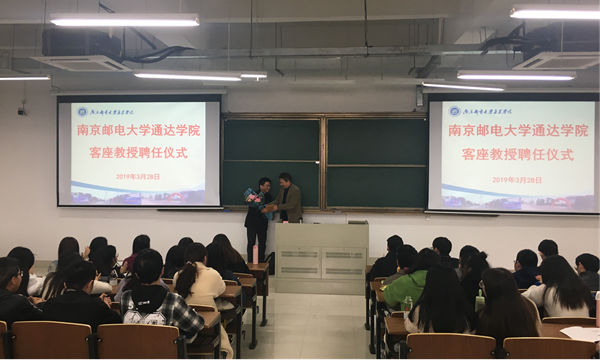 2019年3月28日,万象城官网在教三401教室举行了客座教授聘任仪式,包刚副院长为扬州电信网络运行维护部主任刘强强先生颁发了客座教授聘书。