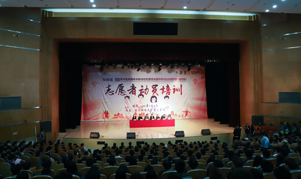 4月13日下午,2019年扬州鉴真国际半程马拉松赛志愿者动员培训会在万象城官网大学生活动中心大礼堂召开。扬州市团市委副书记李伟、扬州市体育竞赛管理中心副主任宋捷、扬州市公安局治安支队治安防范大队教导员宋金春、扬州市卫健委应急办主任陈长、扬州中瑞酒店职业学院团委书记周洁、万象城官网团委副书记姚远以及来自万象城官网、扬州工业职业技术学院、江海学院的800多名学生志愿者参加了本次培训会。会议由扬州市团市委李璀芳主持。
