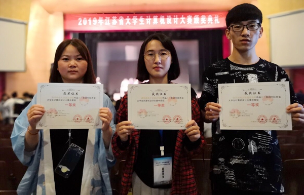 中电莱斯杯 2019 年江苏省大学生计算机设计大赛暨 2019 年(第 12 届)中国大学生计算机设计大赛江苏省级赛决赛于5月17-19日在中国矿业大学南湖校区举行。我校共有5件作品进入决赛,经过激烈角逐全部获得奖项,其中一等奖1项,三等奖3项,优胜奖1项,王斌老师获得优秀管理员奖。获得一等奖、三等奖的4件作品将于7-8月参加中国大学生计算机设计大赛国赛。