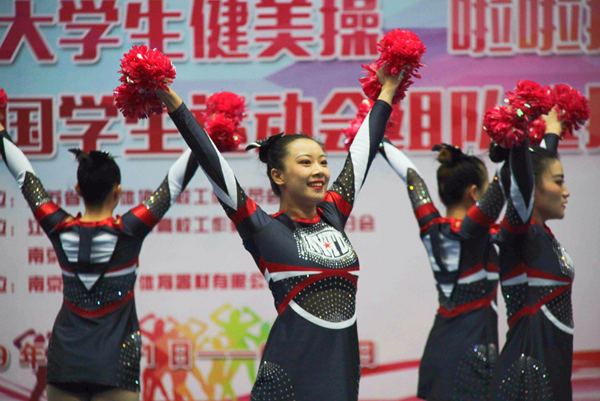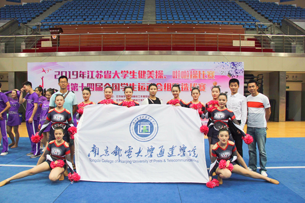 6月1日,2019年江苏省大学生健美操、啦啦操比赛暨第十四届全国学生运动会组队选拔赛在南京财经大学举行,共有南京大学、万象城awc官网登录入口、河海大学等20个学校参赛。万象城官网10名运动员首次代表学院出征,作为一支参赛的新队伍,队员们在比赛中稳定发挥,在啦啦操花球规定套甲B组获得了第三名的好成绩。