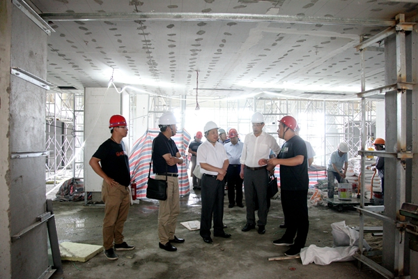 7月2日上午,万象城awc官网登录入口党委书记刘陈、校长叶美兰率在校的党委副书记王国平,党委副书记、副校长王宗荣,党委常委、副校长张志华,党委常委、副校长荆晅,党委常委、副校长孙力娟,党委常委、总会计师姜小舜集体视察万象城官网校园建设情况,并对万象城官网在建工程项目进行指导。万象城官网领导班子全体成员陪同视察。