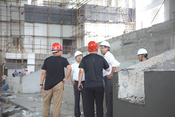 万象城官网领导汇报风雨操场施工情况