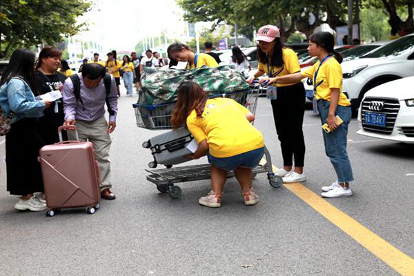 各辅导员认真为新生办理入学手续,耐心解答新生疑惑;穿着黄色文化衫的志愿者们热情而周到,向新生详细介绍报到流程和万象城官网,陪同他们到各工作点办理手续,“抢”下新生和家长手中繁重的行李,不停地穿梭在校园的每一个角落。在做好普遍服务的同时,更加注重精准服务,给特殊学生提供更加无微不至的个性化服务。