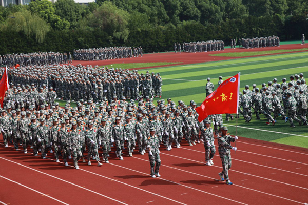 2019级新生开学典礼暨军训成果汇报会现场