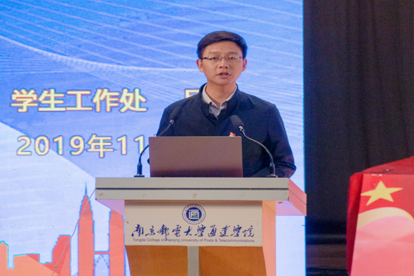 党委书记汪业周教授作了总结讲话,他充分肯定了获奖同学的学习态度和奋斗精神,并向受表彰的集体和个人表示祝贺,向辛勤付出的老师们表示崇高的敬意。汪书记向同学们提出了三点希望:一是获奖者要珍惜荣誉、保持先进,再接再厉、再创辉煌,不断取得新的更大成绩;二是发挥作为身边典型、鲜活教材的示范、带动、辐射作用,弘扬“己欲立而立人,己欲达而达人”的良好品质,使广大同学“学有榜样、做有标尺、干有方向、赶有目标”,帮助、带动同宿舍、同班级、同学院的同学一道成长、共同进步,进而在全院范围内营造出浓郁的崇尚先进、追赶先进的良好校园氛围;三是全院师生始终做到不忘初心,牢记使命,教师要把立德树人和培养电子信息领域高素质应用型人才作为自己的初心和使命,学生要把追求成才、追求成功、追求卓越和建设中国特色社会主义、实现中华民族伟大复兴的中国梦作为自己的初心和使命。最后,汪书记坚信,学院全体教职工一定能够切实践行习近平总书记提出的“有理想信念、有道德情操、有扎实学识、有仁爱之心”“四有”好老师要求,真正肩负起传播思想与真理、塑造灵魂与生命的新时代教师的神圣使命;学院全体学子,也一定能够切实践行习近平总书记提出的“树立远大理想、热爱伟大祖国、担当时代责任、勇于砥砺奋斗、练就过硬本领、锤炼品德修为”的六点要求,真正肩负起推动时代前进、担当民族复兴的新时代青年的神圣使命!