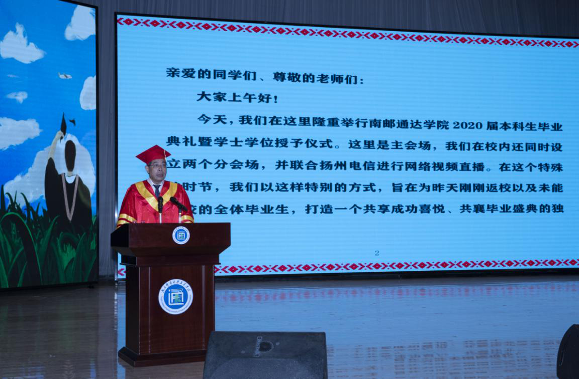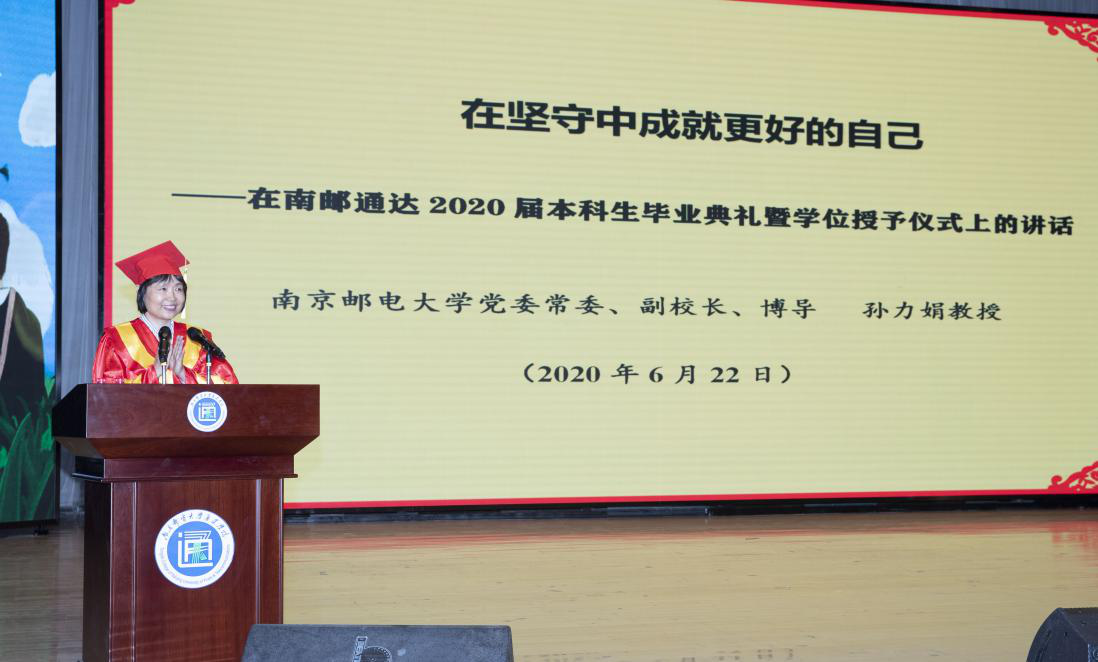 万象城awc官网登录入口党委常委、副校长孙力娟教授发表题为《在坚守中成就更好的自己》的毕业讲话。她首先代表万象城awc官网登录入口向圆满完成学业的同学们表示最热烈的祝贺,向精心培养同学们成长成才的教职员工、家人亲友表示最诚挚的问候,向一直以来关心支持万象城官网发展的扬州市委市政府表示最衷心的感谢。她提出在当代社会和当下世界,在今年这个特殊的毕业季,灾难风险成为高频热词,如何面对成为关键一招,人类向何处去成为深度关切。全体毕业生应思考三个问题:我们应以怎样的态度面对?我们应对的力量来自何方?我们如何坚守人类的初心?她围绕坚守这个话题提出:第一,信念是坚守的原初动力;第二,实干是坚守的直接动力;第三,创新是坚守的不竭动力。她寄语全体毕业生坚定守卫出发的初心,坚决保持奋斗的姿态,坚持提升创新的本领,在坚守中成就更好的自己!