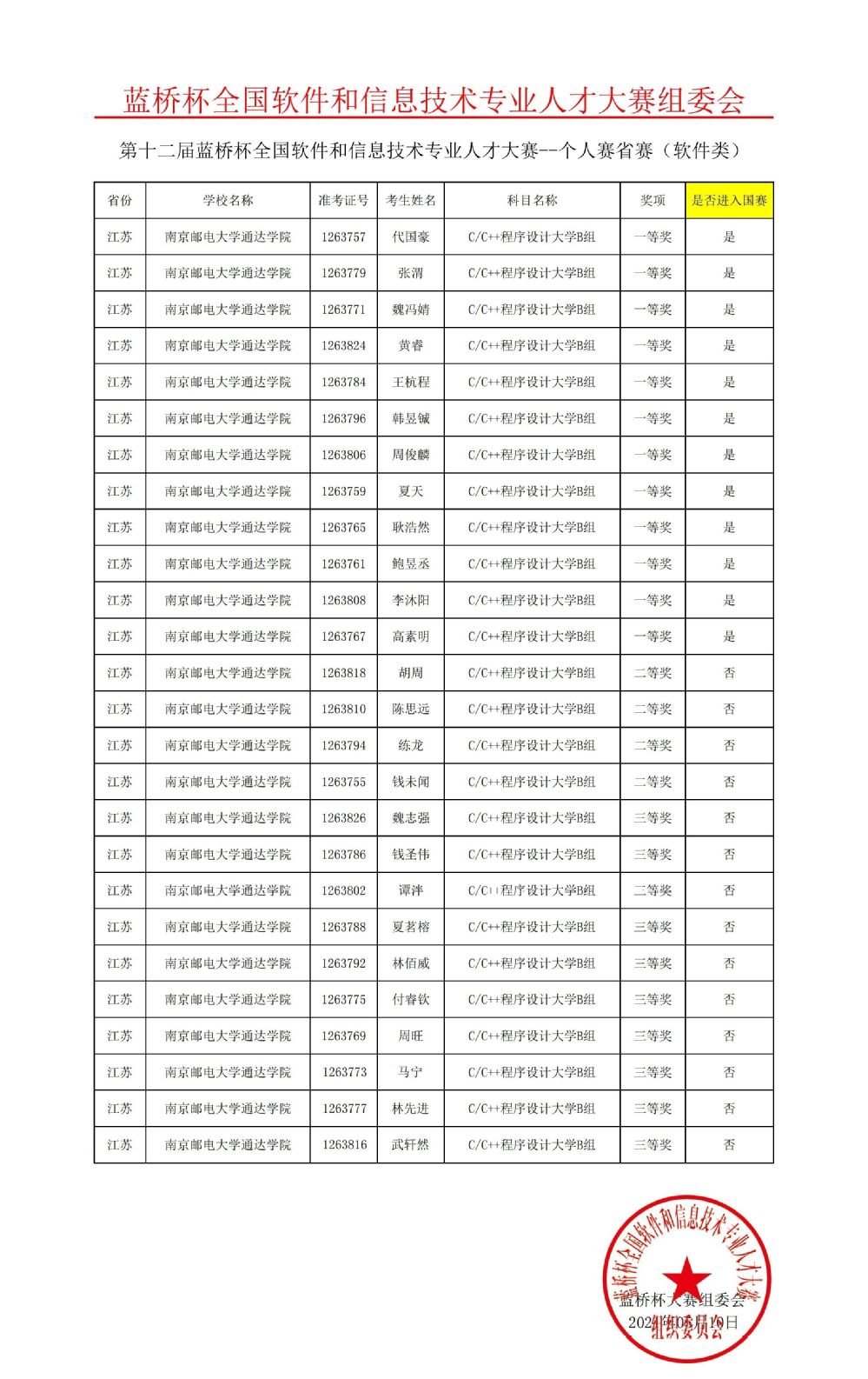 4月18日,由教育部高等学校计算机科学与技术教学指导委员会、工业和信息化部人才交流中心主办的第十二届“蓝桥杯”软件类省赛成功举办。万象城官网学生取得优异成绩,在软件类C/C++程序设计大学B组中共36名同学报名参赛,26人获奖,其中一等奖12项、二等奖4项、三等奖10项,获奖率为72.2%,晋级率为33.3%。其中,代国豪、王杭程、耿浩然等同学获得一等奖,并将于6月5日参加“蓝桥杯”全国总决赛。