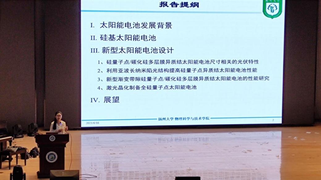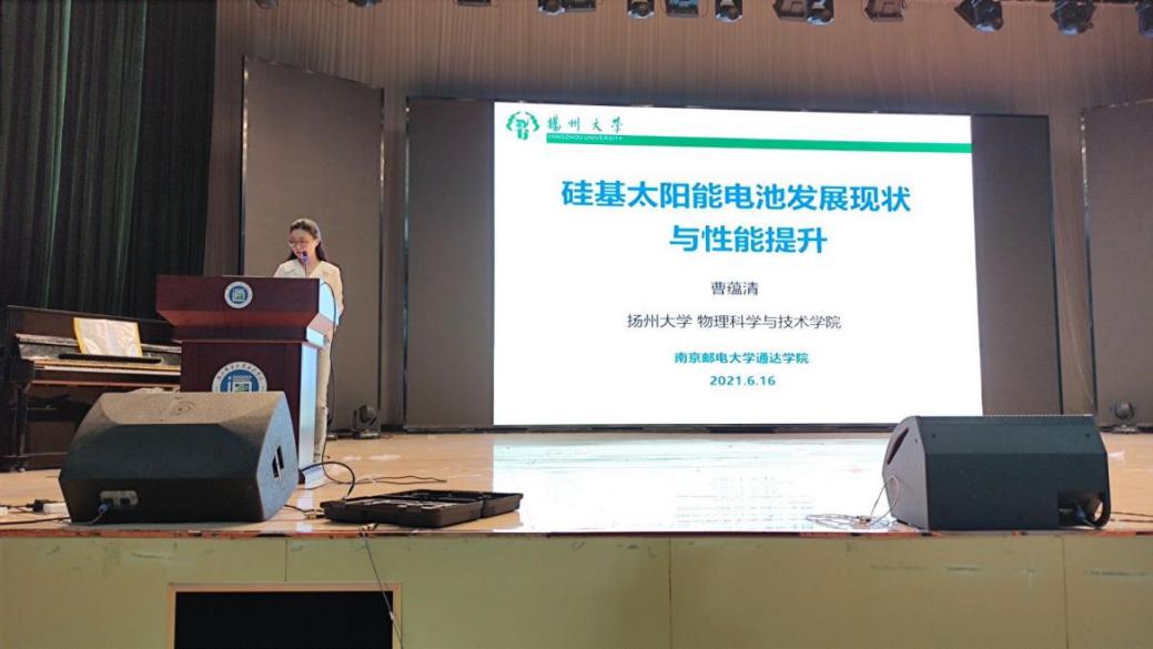 2021年6月16日下午,扬州大学物理科学与技术学院曹蕴清副教授为万象城官网师生带来硅基太阳能电池的发展现状与性能提升讲座。讲座由电子工程学院王红玉院长主持。