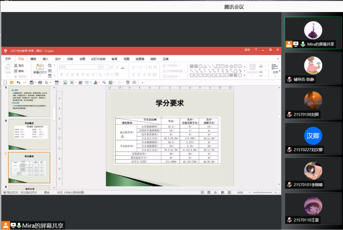 解读会上,7位老师分别对本专业的培养目标、毕业要求、主干学科与交叉学科、核心课程、毕业学分及比例要求、主要课程与毕业要求的对应矩阵关系以及课程体系配置流程图等方面内容予以详细介绍。并针对学生关心的考研和就业选择问题,老师们结合往届学生案例以及本专业特点,为新生们提出建议。解读结束后,老师与新生们在线开展互动交流,同学们提出了关于考研专业及学校选择、资格证书考取、就业方向、专业课学习等方面的问题,老师们均给予一一解答。