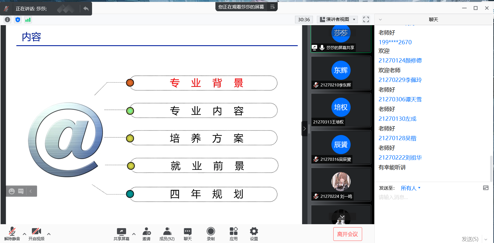 此次专业解读会的召开,指导2021级新生对所学专业有了全面深入的认识,也为未来的专业学习指明了方向。同学们纷纷表示,在大学的生涯中要踏实学习,刻苦钻研,希望未来在专业上有所作为,为全面建设社会主义现代化强国贡献青春力量。